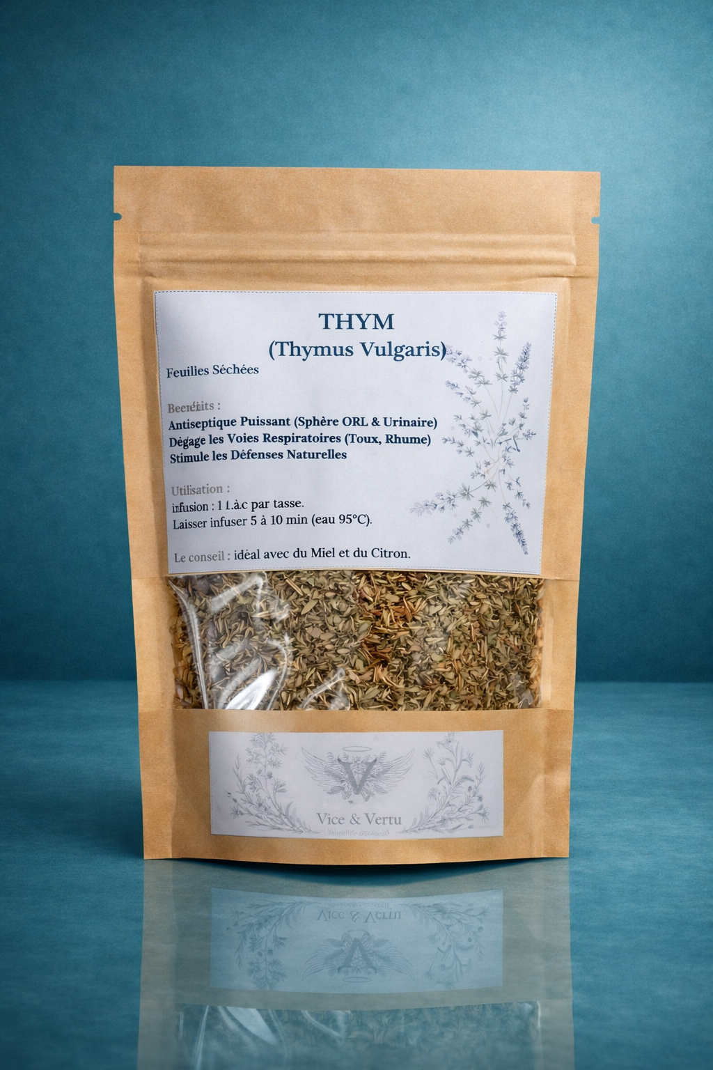 Il est des plantes qui traversent les époques sans jamais perdre de leur noblesse. Le Thym (Thymus Vulgaris) est de celles-ci. Véritable gardien de notre bien-être hivernal, il est la réponse de la nature aux premiers frissons et aux encombrements du corps. Ce n’est pas simplement une aromate, c’est une force purifiante. Gorgé de soleil, il restitue sa chaleur pour assainir l’organisme lorsque celui-ci se fragilise. Nous vous proposons ici la feuille séchée dans sa plus simple expression. En infusion, elle déploie ses volutes aromatiques pour dégager le souffle et offrir une sensation immédiate de netteté et de clarté intérieure.