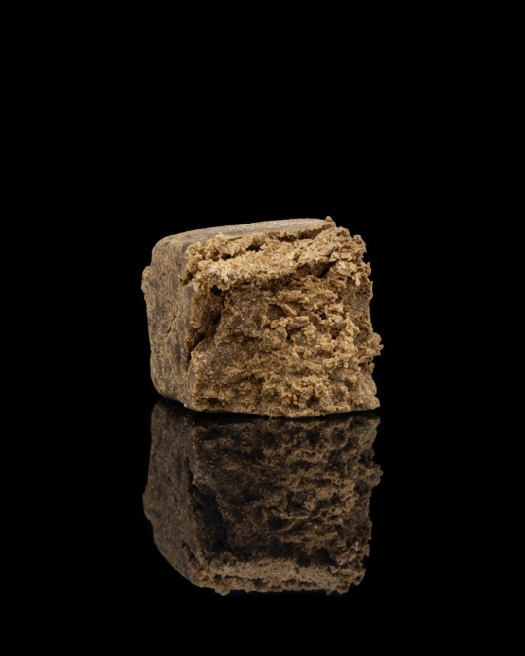 Visuellement, c’est un lingot de sable. Sa robe extérieure est blonde, mate, poudreuse. Mais brisez-le, et il révèle sa vraie nature : un cœur dense, sombre et huileux. C’est le signe indubitable d’une filtration haute qualité qui ne garde que le meilleur de la plante : les trichomes.