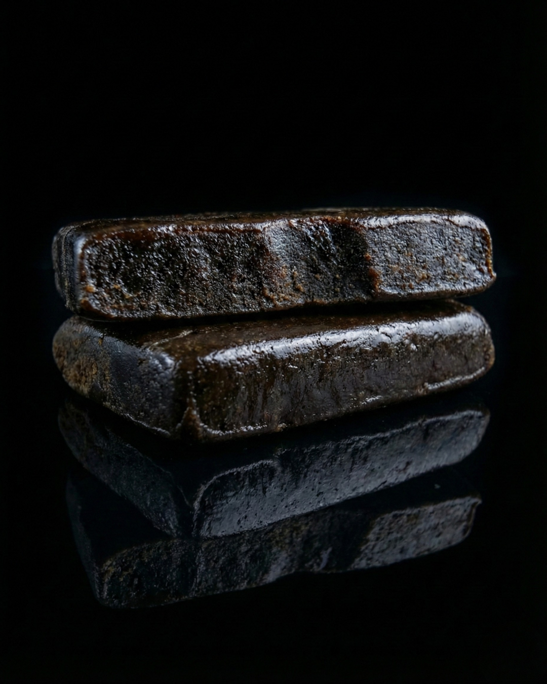 Noire, huileuse et luisante comme du pétrole brut, la DARK SUGA est une confiserie des abysses. Ce n’est pas une résine que l’on effrite, c’est une matière que l’on sculpte.